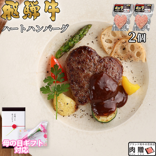 【母の日 2026年 限定ラッピング】飛騨牛 ハートハンバーグ 食べ比べ ギフト 2個を